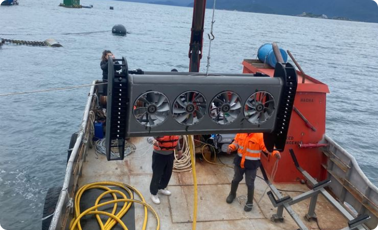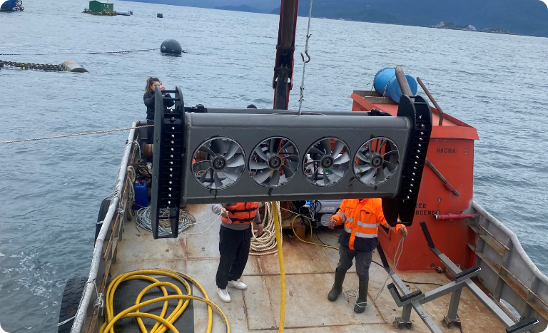 Staff member overseeing deployment, 270 kg cleaning head weight.